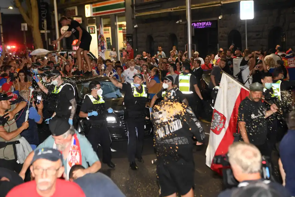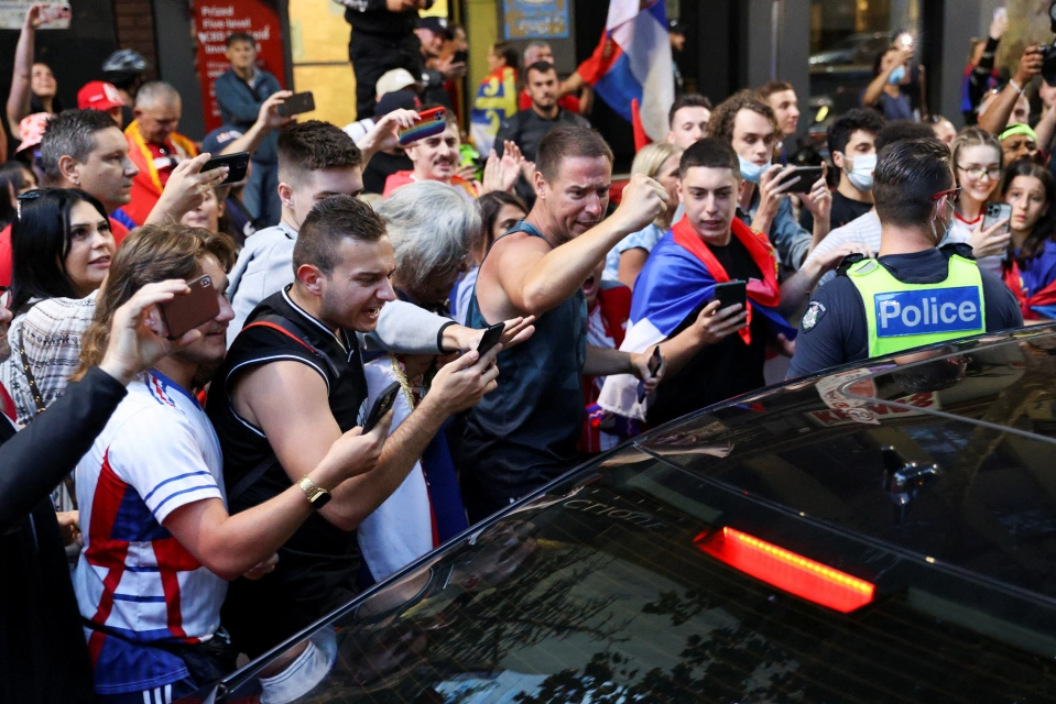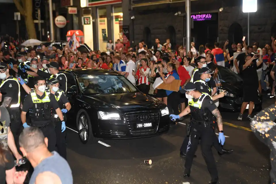 Στο μεταξύ, χάος και σύγχυση επικράτησε στη Μελβούρνη, όπου εκατοντάδες οπαδοί του Νόβακ Τζόκοβιτς, Σέρβοι και Έλληνες, κατέκλυσαν την περιοχή μπροστά από τα γραφεία των δικηγόρων του διαμαρτυρόμενοι για τη συμπεριφορά της κυβέρνησης της Αυστραλίας προς τον Σέρβο τενίστα.