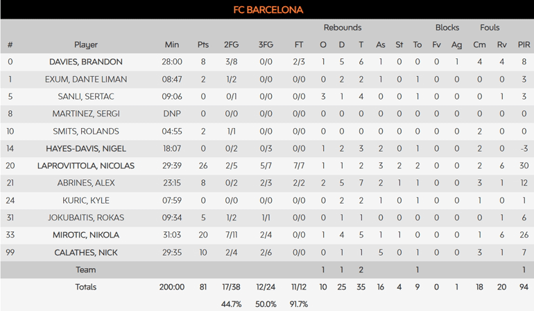 Με την ψυχολογία να έχει… εγκατασταθεί στην ισπανική πλευρά, τον Νίκολα Μίροτιτς να είναι συνεπής στα επιθετικά του καθήκοντα και τον Οθέλο Χάντερ να παλεύει μάταια μόνος του από τη γερμανική ομάδα, η Μπαρτσελόνα δεν αγχώθηκε μέχρι το τελικό 81-72.