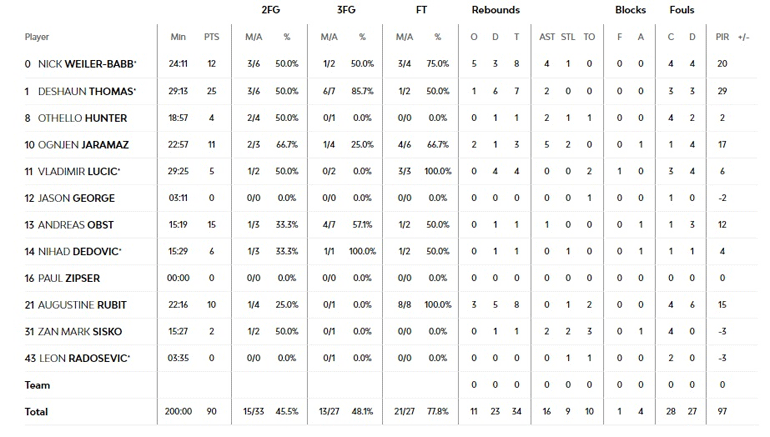 Εκτός του Αμερικανού φόργουορντ, πολύτιμοι ήταν και οι Αντρέας Ομπστ (15 πόντοι με 4/7 τρίποντα), Νικ Βάιλερ-Μπαμπ (12 πόντοι, 8 ριμπάουντ), Όγκιεν Γιάραμαζ (11 πόντοι, 5 ασίστ) και Όγκουστιν Ρούμπιτ (10 πόντοι, 8 ριμπάουντ).