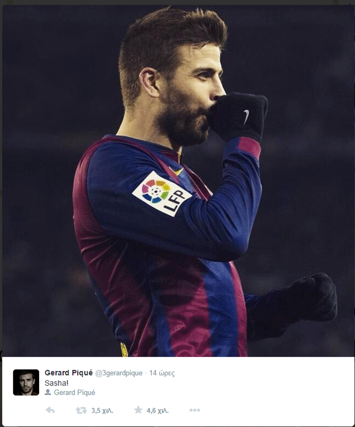 O ποδοσφαιριστής της Barcelona ανέβασε μια φωτογραφία στον λογαριασμό του στο instagram με ένα χαρακτηριστικό στιγμιότυπο, ενώ το ίδιο έκανε λίγο αργότερα και η σύντροφός του Shakira.