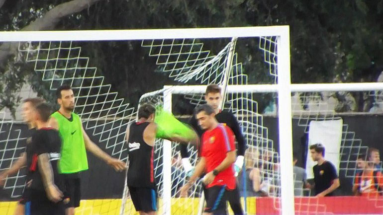 Στο βίντεο αυτό ο Νεϊμάρ φαίνεται να έρχεται στα χέρια με τον Πορτογάλο, που πρόσφατα μεταγράφηκε στους «μπλαουγκράνα» από τη Μπενφίκα, ενώ στη συνέχεια σπεύδουν συμπαίκτες του να τον συγκρατήσουν. Τελικά ο Βραζιλιάνος πετάει επιδεικτικά τη φανέλα προπόνησης και αποχωρεί από τον αγωνιστικό χώρο.