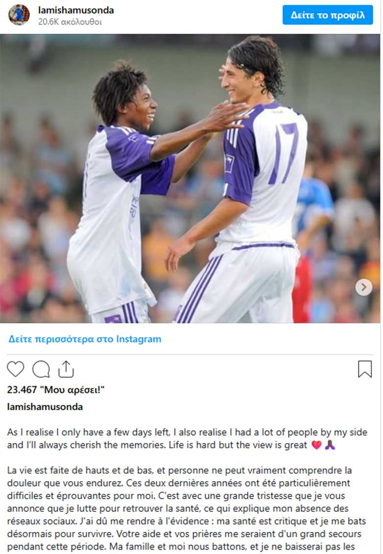 Βαθιά συγκίνηση έχει προκαλέσει στον ποδοσφαιρικό κόσμο η δημόσια εξομολόγηση του πρώην ποδοσφαιριστή των ακαδημιών της Τσέλσι, Λαμίσα Μουσόντα, ο οποίος αποκάλυψε μέσα από τα κοινωνικά δίκτυα ότι δίνει μάχη για τη ζωή του, εκφράζοντας τον φόβο πως ενδέχεται να του απομένουν μόλις «λίγες ημέρες».