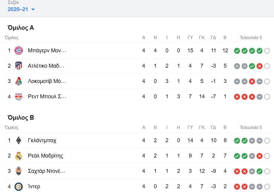 Επίσης, μετά το κακό ξεκίνημα που είχε στη διοργάνωση, η Ρεάλ Μαδρίτης κρατά την κατάσταση στα χέρια της μετά το «διπλό» στο Μιλάνο επί της Ίντερ (2-0).