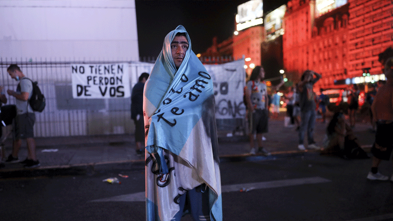 Ο μυθικός οβελίσκος του Μπουένος Άιρες, όπου οι Αργεντινοί γιόρτασαν το 1986 την κατάκτηση του Παγκόσμιου Κυπέλλου στο Μεξικό, έγινε την Τετάρτη το σημείο συνάντησης για εκατοντάδες οπαδούς του Ντιέγκο Μαραντόνα.