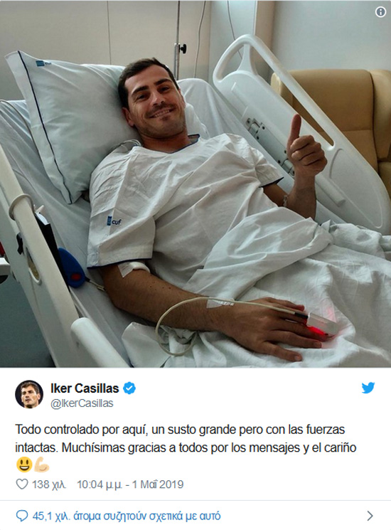 Λίγες ώρες μετά τη σοβαρή περιπέτεια που πέρασε με την υγεία του ο Ίκερ Κασίγιας χαμογελά ξανά!