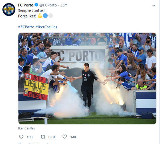 «Ο τερματοφύλακας μας υπέστη καρδιακό επεισόδιο στην πρωινή προπόνηση της Τετάρτης. Ο Ίκερ Κασίγιας υπέστη οξύ έμφραγμα του μυοκαρδίου κατά την διάρκεια της προπόνησης στο Προπονητικό κέντρο Πόρτογκαϊα, στο Ολίβαλ.