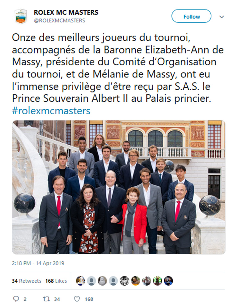 Οι κορυφαίοι τενίστες συνομίλησαν με τον Πρίγκιπα Αλβέρτο Β’ του Μονακό, ο οποίος μάλιστα δέχτηκε από τον Τζόκοβιτς δώρο δύο μεγάλες μπάλες του τένις με τις υπογραφές των 11 αθλητών.