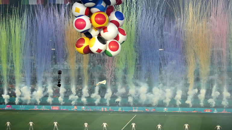 Φαντασμαγορική ήταν η τελετή έναρξης του Euro 2020 στο «Ολίμπικο» της Ρώμης, πριν την έναρξη του αγώνα ανάμεσα στην Τουρκία και την Ιταλία, για την πρεμιέρα της διοργάνωσης.