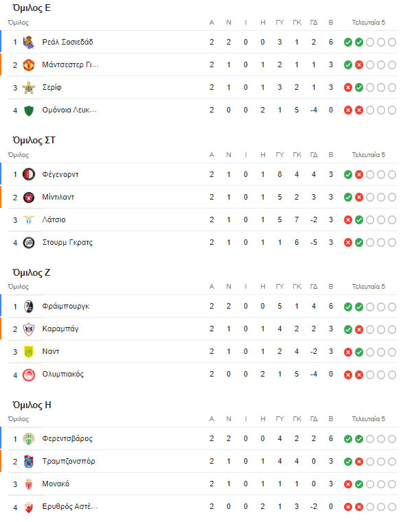 Τα αποτελέσματα της 2ης αγωνιστικής των ομίλων του Europa League: