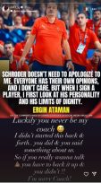 «Ευτυχώς που δεν θα γίνεις ποτέ προπονητής μου. Δεν ξεκίνησα εγώ αυτή την αντιπαράθεση, εσύ το έκανες και είπες κάτι για εμάς. Αν θέλεις να μιλήσεις άσχημα, πρέπει να το υποστηρίξεις και εσύ δεν το έκανες. Λυπάμαι, κόουτς, ακούγεσαι σαν να πονάς. Μόνο αγάπη όμως. Εγώ θα είμαι απλά ο εαυτός μου, όσοι με ξέρουν το ξέρουν».