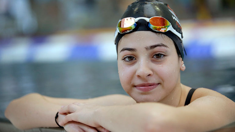Η νεαρή κολυμβήτρια από τη Συρία αναγκάστηκε να κολυμπήσει αρκετά. Όχι για κάποιο μετάλλιο αλλά με… έπαθλο την ίδια της τη ζωή και των άλλων 19 επιβαινόντων στη βάρκα, η οποία επρόκειτο να τους μεταφέρει από την Τουρκία στην Ελλάδα.