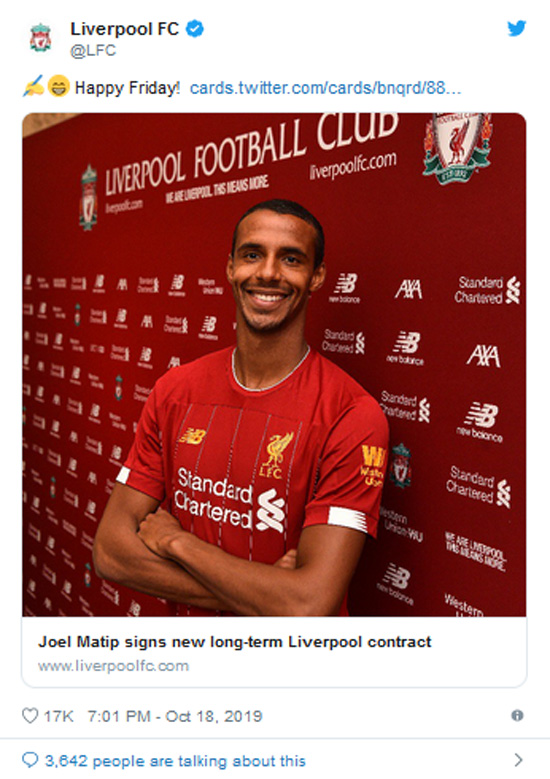 Με τη φανέλα της Λίβερπουλ θα συνεχίσει να αγωνίζεται ο Ζοέλ Ματίπ, καθώς ανανέωσε τη συνεργασία του με τους «ρεντς», όπως ανακοινώθηκε την Παρασκευή.