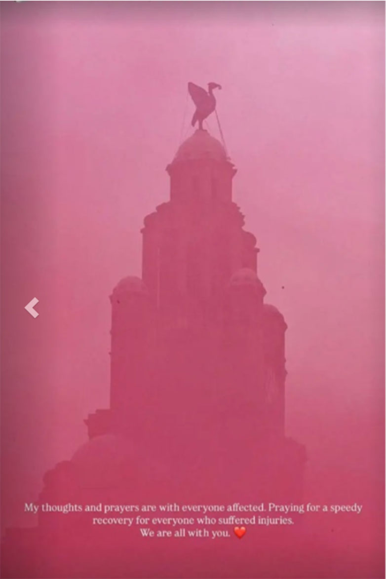 «Οι σκέψεις και οι προσευχές μου είναι με όλους όσους επηρεάζονται. Προσεύχομαι για γρήγορη ανάρρωση σε καθένα από τους τραυματίες», συμπλήρωσε ο Ολλανδός διεθνής αμυντικός της Λίβερπουλ, που δημοσίευσε μια φωτογραφία του «Liver Building» πίσω από κόκκινο καπνό.