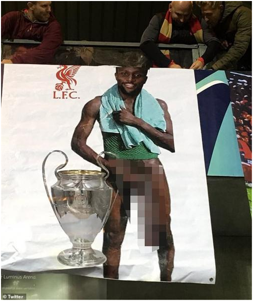 Σε αυτό απεικονιζόταν το πρόσωπο του ποδοσφαιριστή της αγγλικής ομάδας «κολλημένο» στο σώμα ενός μελαμψού άνδρα με μεγάλα… προσόντα δίπλα στο τρόπαιο της κορυφαίας διασυλλογικής διοργάνωσης.