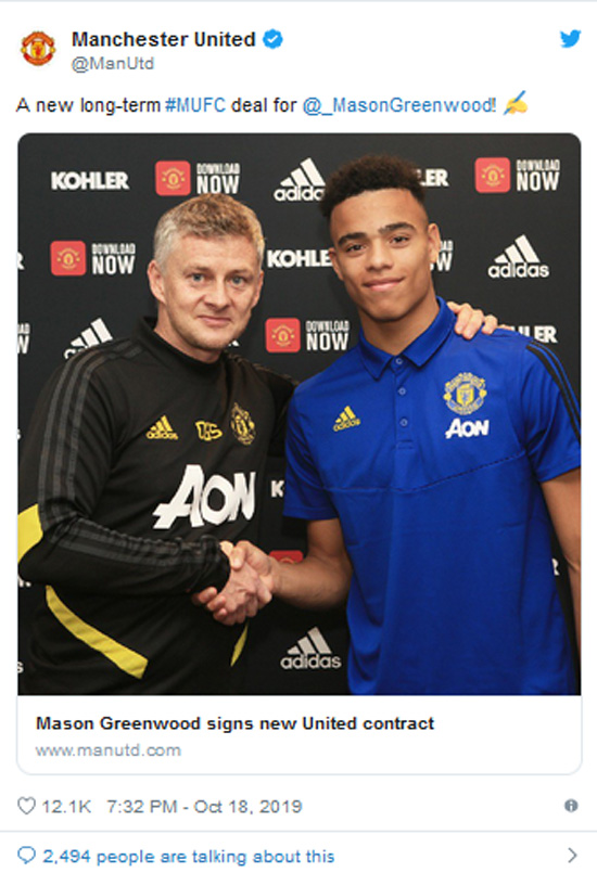 Ο 18χρονος, διεθνής με την Εθνική Αγγλίας U21 επιθετικός, υπέγραψε νέο συμβόλαιο με τη Μάντσεστερ Γιουνάιτεντ έως το καλοκαίρι του 2023, με οψιόν επέκτασης για έναν επιπλέον χρόνο.