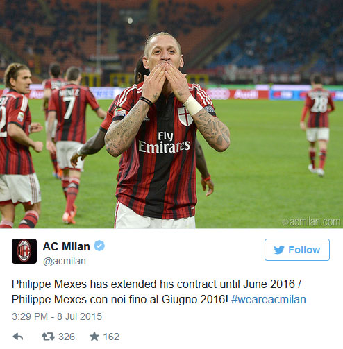 Ο 33χρονος Γάλλος κεντρικός αμυντικός, ο οποίος φερόταν να απασχολεί τον Ολυμπιακό, θα φορά και τη νέα σεζόν τη φανέλα της Μίλαν, καθως οι «ροσονέρι» ανακοίνωσαν την ανανέωση της συνεργασίας τους μέχρι τον Ιούνιο του 2016.