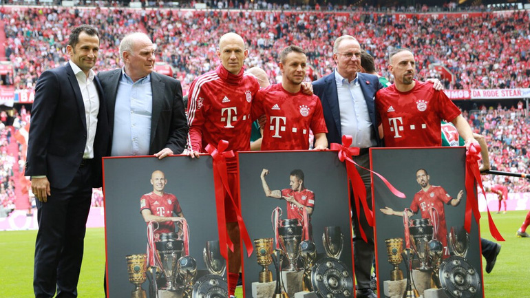 Οι τρεις ποδοσφαιριστές που αποχωρούν το καλοκαίρι από τους Βαυαρούς τιμήθηκαν, πριν το ματς, για την προσφορά τους και μάλιστα οι Γερμανοί δημιούργησαν ένα βίντεο με τα δύο εξτρέμ και τη συνεργασία που είχαν τόσα χρόνια.