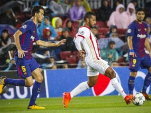 Έξι λεπτά αργότερα μάλιστα η Μπαρτσελόνα είχε δοκάρι σε κεφαλιά του Παουλίνιο, ενώ στο 42ο λεπτό ο Ολυμπιακός απέκτησε αριθμητικό πλεονέκτημα, καθώς αποβλήθηκε με δεύτερη κίτρινη κάρτα ο Πικέ για το γκολ που έβαλε με το χέρι.