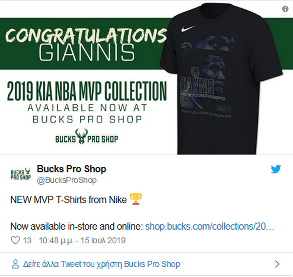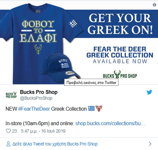 Η… ελληνική ένδυση προστέθηκε στον κατάλογο του επίσημου καταστήματος των Μιλγουόκι Μπακς.