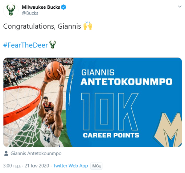 Με τους 28 πόντους που σημείωσε ο Έλληνας αστέρας ξεπέρασε τους 10.000 στην καριέρα του (έχει 10.004), φτάνοντας στο συγκεκριμένο επίτευγμα σε 507 ματς στο ΝΒΑ.