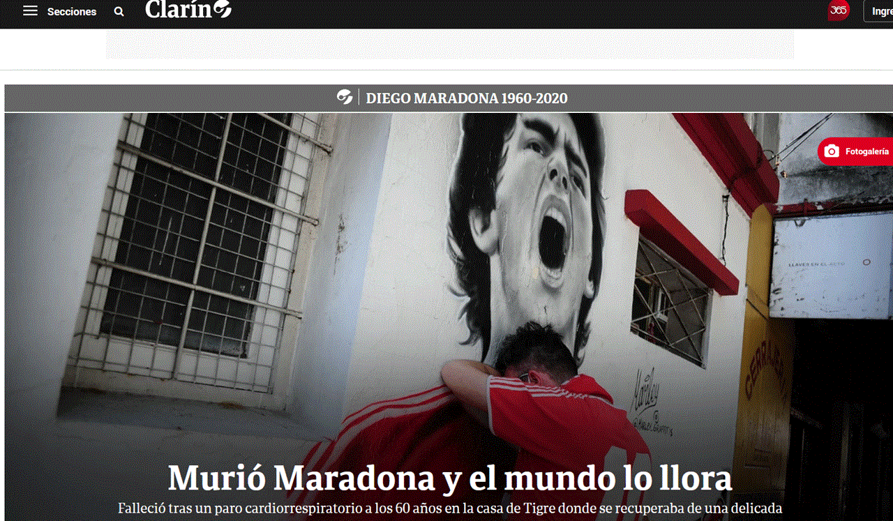 Clarin (Αργεντινή): Παγκόσμιο σοκ: Πέθανε ο Ντιέγκο Αρμάντο Μαραντόνα
