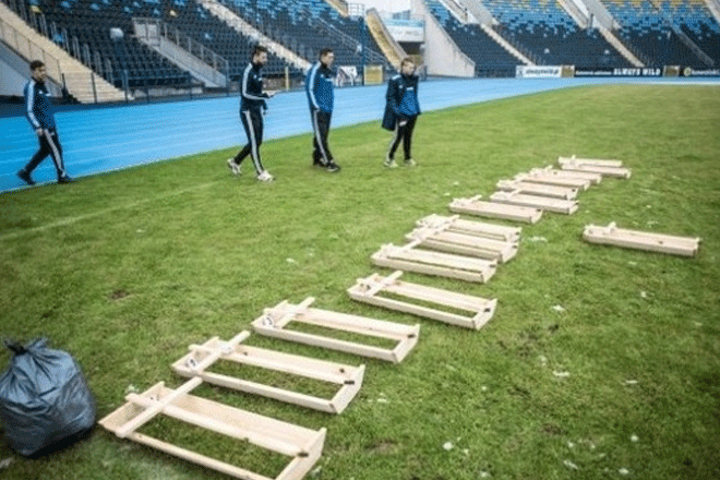 Πιο συγκεκριμένα, τα ξημερώματα της Δευτέρας μερίδα των φανατικών οπαδών της Ζάβιστα Μπούντγκοστζ κατάφερε να «τρυπώσει» στο γήπεδο, στήνοντας στον αγωνιστικό χώρο 16 τάφους, με σταυρούς, που είχαν πάνω τους γραμμένα τα αρχικά ποδοσφαιριστών και του προέδρου της ομάδας.