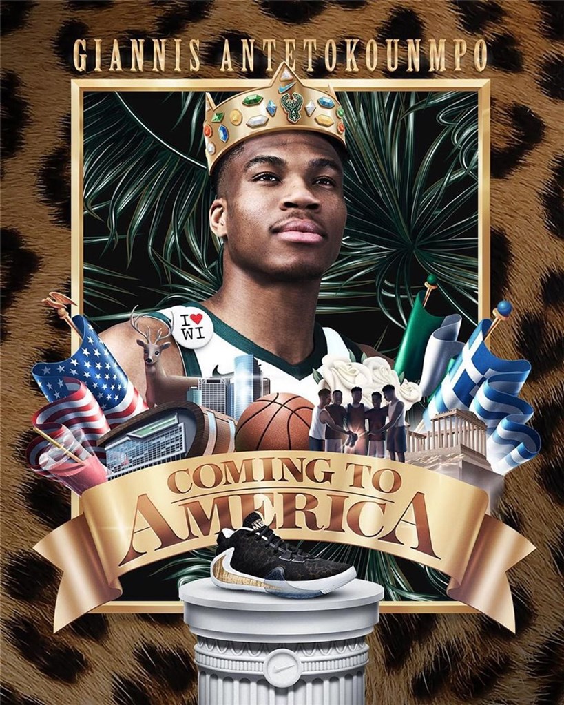 Η γνωστή εταιρεία αθλητικής ένδυσης επέλεξε για σλόγκαν τη φράση «Coming to America», εμπνευσμένη από την γνωστή ταινία «Ο Πρίγκιπας της Ζαμούντα», η οποία είχε κυκλοφορήσει στις αίθουσες των κινηματογράφων το 1988. Τυχαίνει δε να είναι μία από τις αγαπημένες ταινίες του άσου των Μιλγουόκι Μπακς.
