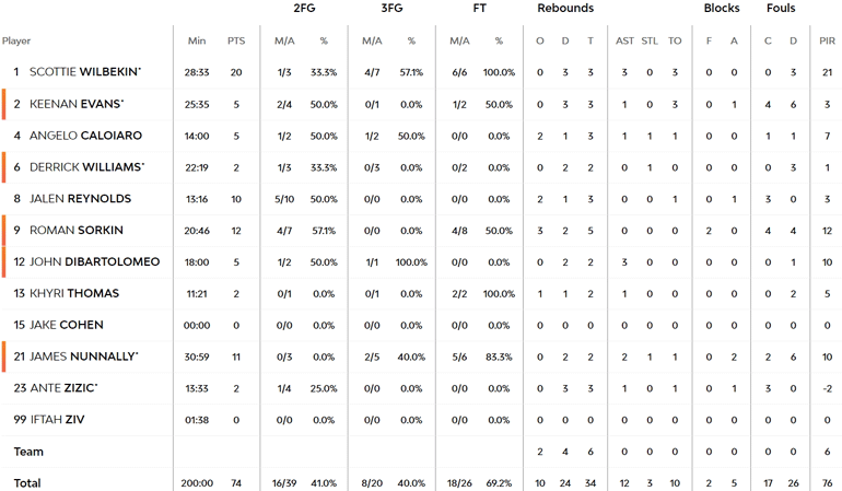 Από τους Ισραηλινούς ξεχώρισε ο Σκότι Ουίλμπεκιν με 20 πόντους.