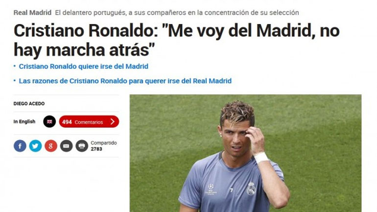 Αυτό τουλάχιστον αναφέρει η «Marca», η οποία σε ρεπορτάζ της αποκαλύπτει ότι ο «CR7» επιβεβαίωσε στους συμπαίκτες του στην εθνική Πορτογαλίας ότι δεν σκοπεύει να επιστρέψει στη «βασίλισσα».