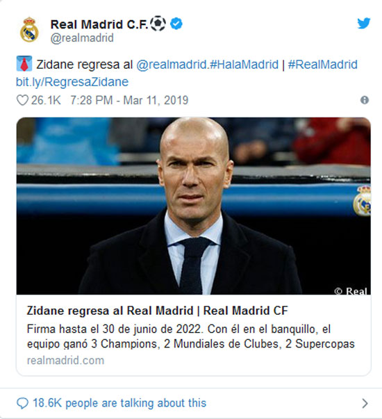 Ο καλύτερος προπονητής στον κόσμο επέστρεψε στην Ρέαλ και θέλω να τον ευχαριστήσω για την αφοσίωση του και για το ότι αποτελεί μέρος αυτού του θρυλικού συλλόγου».