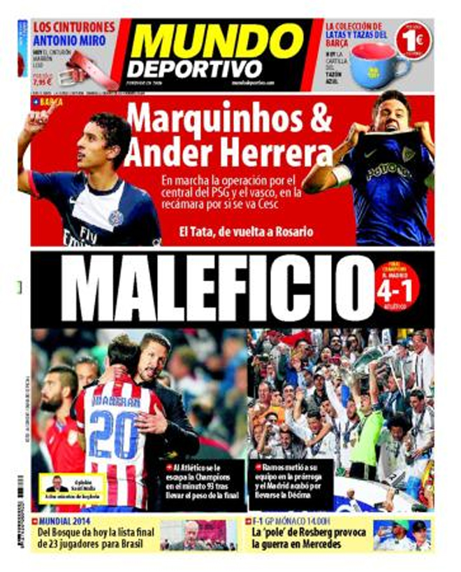 Τέλος, η El Mundo Deportivo γράφει: «Κατάρα. Η Ατλέτικο ήταν πρωταθλήτρια Ευρώπης μέχρι το 93’».