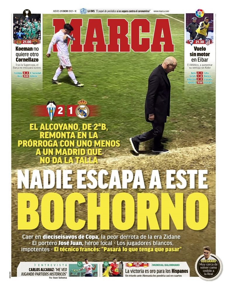 Το ανεπανάληπτο και ιστορικό κάζο της Ρεάλ Μαδρίτης, που αποκλείστηκε από την Αλκογιάνο στο Κύπελλο Ισπανίας, περιγράφει με δηκτικό τρόπο η «Marca».