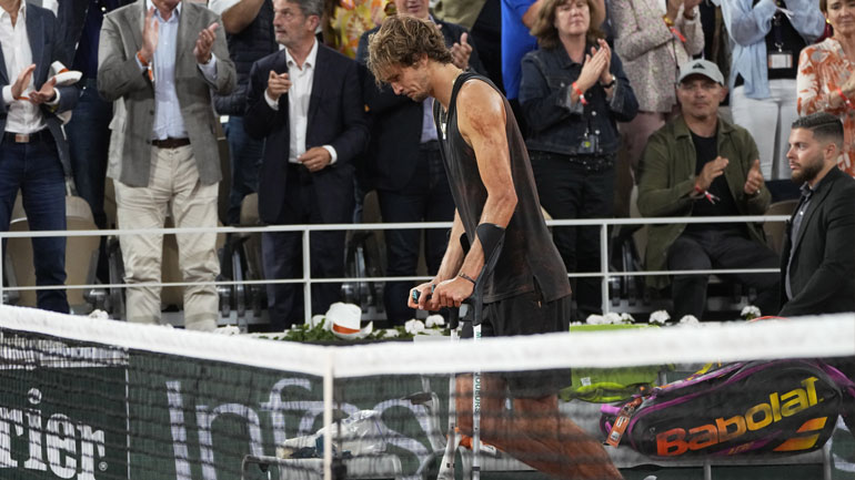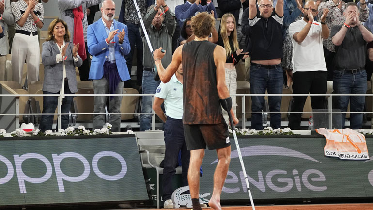 Απρόσμενη όσο και… σοκαριστική εξέλιξη είχε ο καταπληκτικός ημιτελικός του μονού ανδρών στο Ρολάν Γκαρός, ανάμεσα στον Αλεξάντερ Ζβέρεφ (νο3) και τον Ράφα Ναδάλ (νο5), καθώς ο Γερμανος τενίστας «γύρισε» το πόδι του στον τελευταίο πόντο του 12ου γκέιμ στο δεύτερο σετ κι άρχισε να σφαδάζει από τους πόνους.