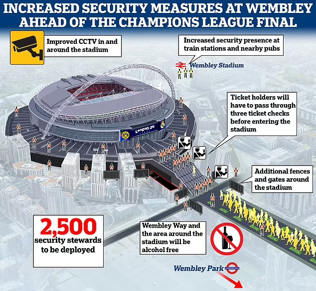 Όπως είναι φυσικό τα μέτρα ασφαλείας στο Γουέμπλεϊ είναι δρακόντεια.