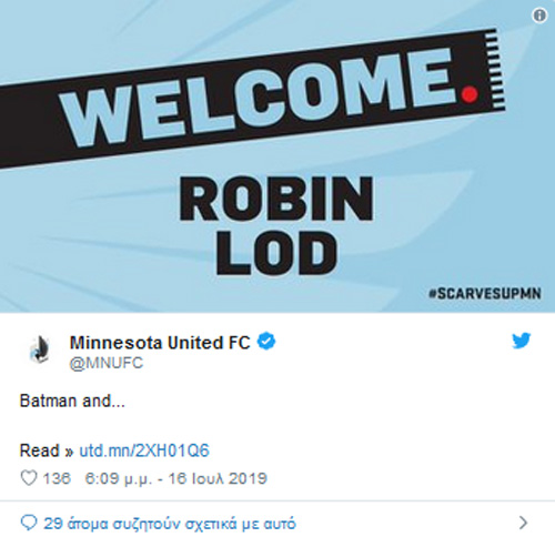 Στο πρωτάθλημα ποδοσφαίρου των Ηνωμένων Πολιτειών (MLS) θα συνεχίσει την καριέρα του ο Ρόμπιν Λουντ.
