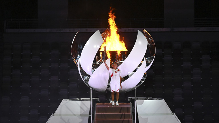 Από τα χέρια της Ναόμι Οσάκα, άναψε ο Βωμός στο Ολυμπιακό Στάδιο του Τόκιο, κατά την τελετή έναρξης των Ολυμπιακών Αγώνων του Τόκιο.