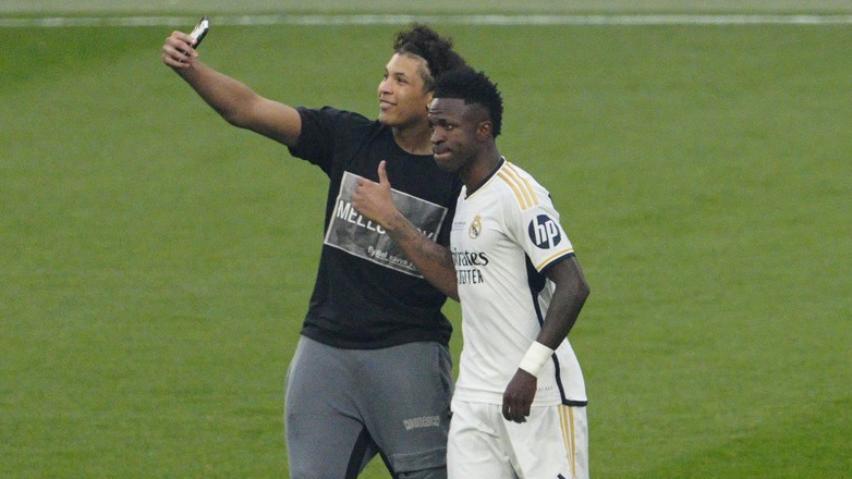 Με ένα απρόοπτο ξεκίνησε ο τελικός, καθώς με το… καλημέρα ένας φίλαθλος εξέθεσε τα μέτρα ασφαλείας που είχαν ληφθεί. Συγκεκριμένα, μπήκε ανενόχλητος στον αγωνιστικό χώρο για να βγάλει σέλφι με τον Βινίσιους και μάλιστα το παράδειγμά του ακολούθησαν ακόμη δύο φίλαθλοι.