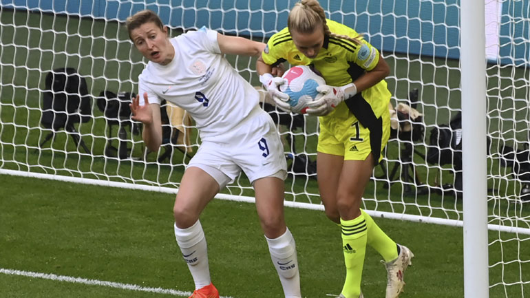 Στα εναπομείναντα λεπτά δεν άλλαξε κάτι, κι έτσι ο τελικός οδηγήθηκε σε παράταση, με την Αγγλία να φτάνει ξανά κοντά στο γκολ με το σουτ της Τουν που έδιωξε με τα πόδια η Φρομς.