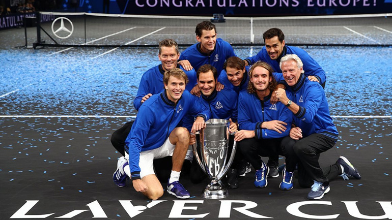 Η ομάδα της Ευρώπης πανηγύρισε δεόντως την κατάκτηση του τίτλου, με τον Στέφανο Τσιτσιπά να σηκώνει τη κούπα μαζί με τον Ραφαέλ Ναδάλ, Ρότζερ Φέντερερ, Αλεξάντερ Ζβέρεφ αλλά και τον προπονητή της ομάδας Μπιόρν Μποργκ.