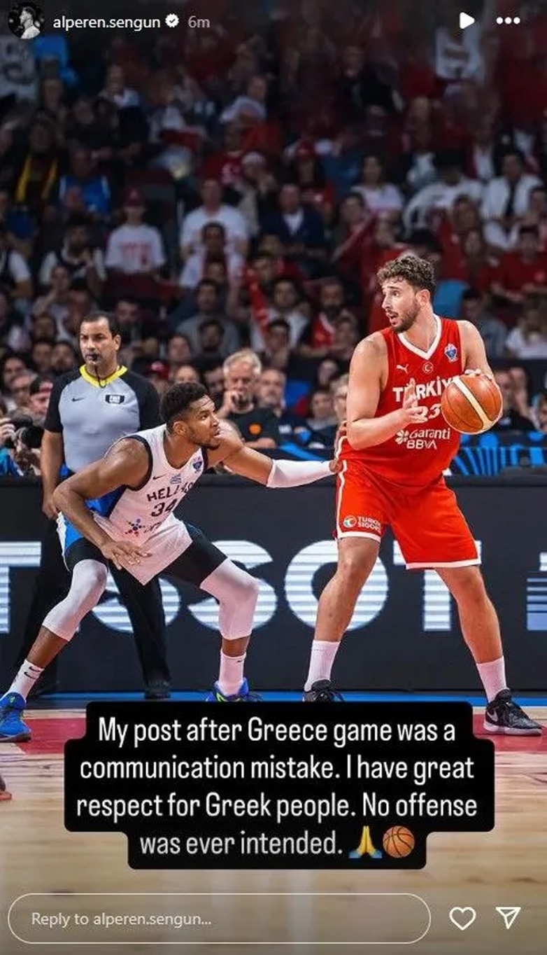 Ο Τούρκος σέντερ, μέσα από δική του τοποθέτηση στα social media, αναγνώρισε πως οι προηγούμενες δηλώσεις και αναρτήσεις ήταν αποτέλεσμα ενός «επικοινωνιακού λάθους» και ξεκαθάρισε ότι σε καμία περίπτωση δεν είχε πρόθεση να προσβάλει ή να υποτιμήσει κανέναν.