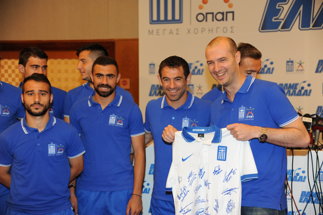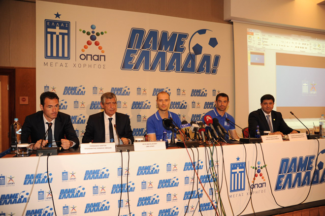 Στο πλαίσιο της παρουσίασης, ο κ. Petr Matejovsky, CMO της ΟΠΑΠ, ο Αναπληρωτής Πρόεδρος της ΕΠΟ, κ. Ιωάννης Παπακωνσταντίνου, ο προπονητής της Εθνικής Ομάδας, Φερνάντο Σάντος και ο Αρχηγός της Ομάδας, Γιώργος Καραγκούνης, απηύθυναν σύντομους χαιρετισμούς, ενώ η εκδήλωση έκλεισε σε πανηγυρικό κλίμα με την αίθουσα να σείεται από το τραγούδι του συνθήματος! Μέσα σε πανηγυρισμούς και χειροκροτήματα, η Ομάδα κατευθύνθηκε προς το Αεροδρόμιο συνοδευόμενη από τις ευχές όλων για καλή τύχη.