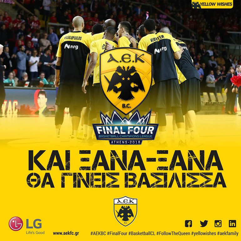 Τις ευχές της στην ΚΑΕ ΑΕΚ για νίκη στον αποψινό ημιτελικό του Basketball Champions League απέναντι στη Μούρθια, έστειλε η ΠΑΕ ΑΕΚ με ποστάρισμά της στο Facebook.