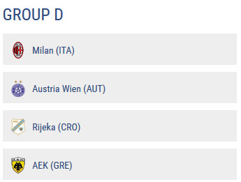 Οι Μίλαν, Αούστρια Βιέννης και Ριέκα θα βρεθούν στον δρόμο της ΑΕΚ στους ομίλους του Europa League, όπως προέκυψε από την κλήρωση που έγινε το μεσημέρι της Παρασκευής.