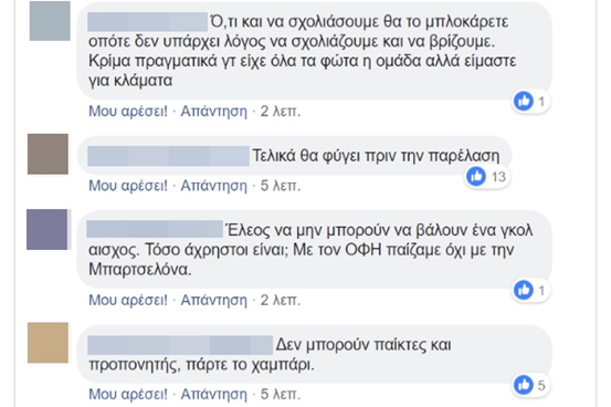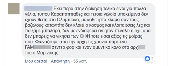 στους διαχειριστές τής επίσημης σελίδας τού Ολυμπιακού στο Facebook,