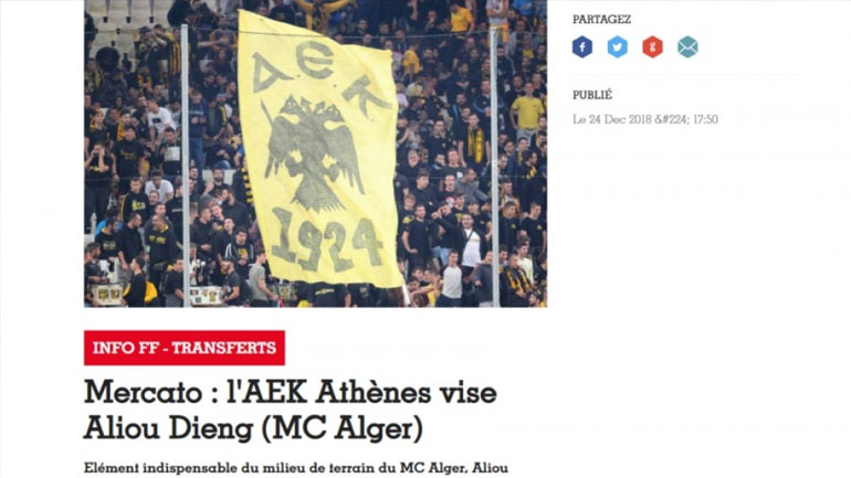 «Από τα πιο σημαντικά περιουσιακά στοιχεία της MC Alger είναι ο μέσος Αλιού Ντιένγκ, ο οποίος αποτελεί έναν από τους πιο πολυσυζητημένους παίκτες της Μαγκρέμπ. Ο 21χρονος από το Μάλι βρίσκεται στο μεταγραφικό στόχαστρο της ΑΕΚ.