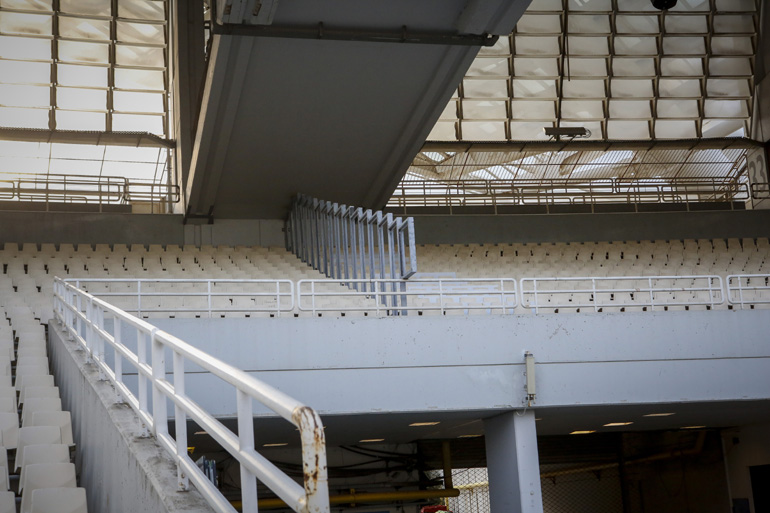 Παράλληλα, υπάρχουν προστατευτικά κάγκελα και κιγκλιδώματα, ενώ στις τάφρους υπάρχουν συρματοπλέγματα προκειμένου να μην εισέλθουν οι οπαδοί στον αγωνιστικό χώρο.