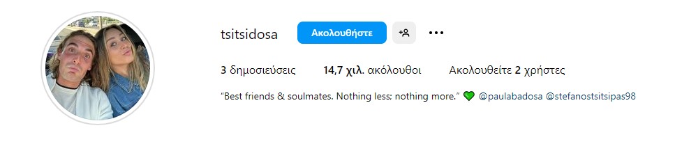 Βέβαια, Τσιτσιπάς και Μπαντόσα συμβάλλουν ιδιαίτερα σε αυτό, μιας και αναρτούν ασταμάτητα φωτογραφίες και βίντεο, ο ένας του άλλου, αλλά και μαζί. Μάλιστα, οι δυο τους έφτιαξαν και κοινό προφίλ στο Instagram, με το όνομα @tsitsidosa, δηλώνοντας «καλοί φίλοι και αδερφές ψυχές. Τίποτα λιγότερο, τίποτα περισσότερο».