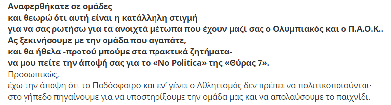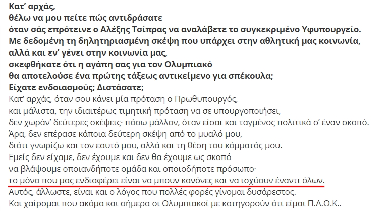 σε θέμα που -κατά τα λεγόμενά σας- δεν έχει δίκιο ο Ολυμπιακός.