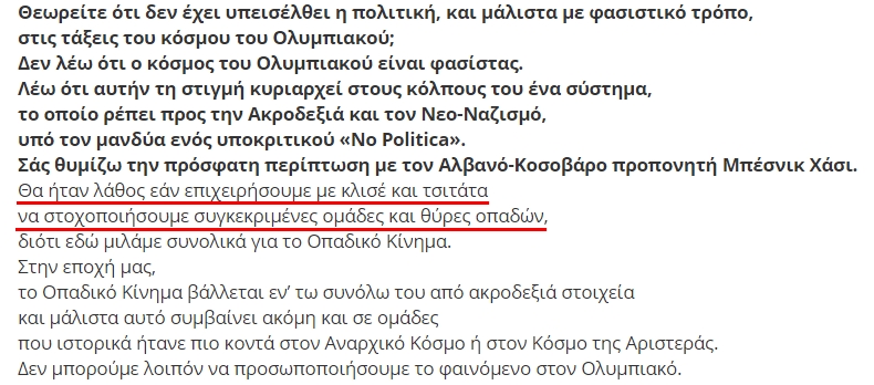 για τα άρρωστα φαινόμενα που χαρακτηρίζουν τον Ολυμπιακό