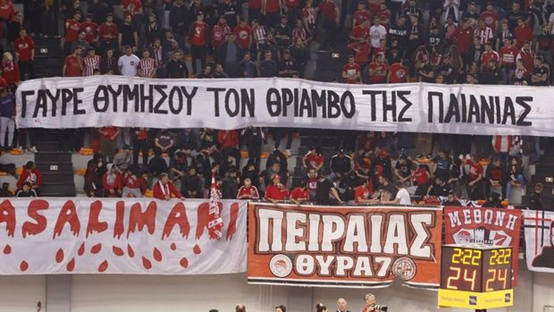αναρτώντας κατά τη διάρκεια τής αναμέτρησης Ολυμπιακός-Ζαλγκίρις